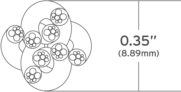 8 strands of 19.5 AWG OFE (oxygen free electrolytic) copper with industry leading conductivity. (102% IACS).