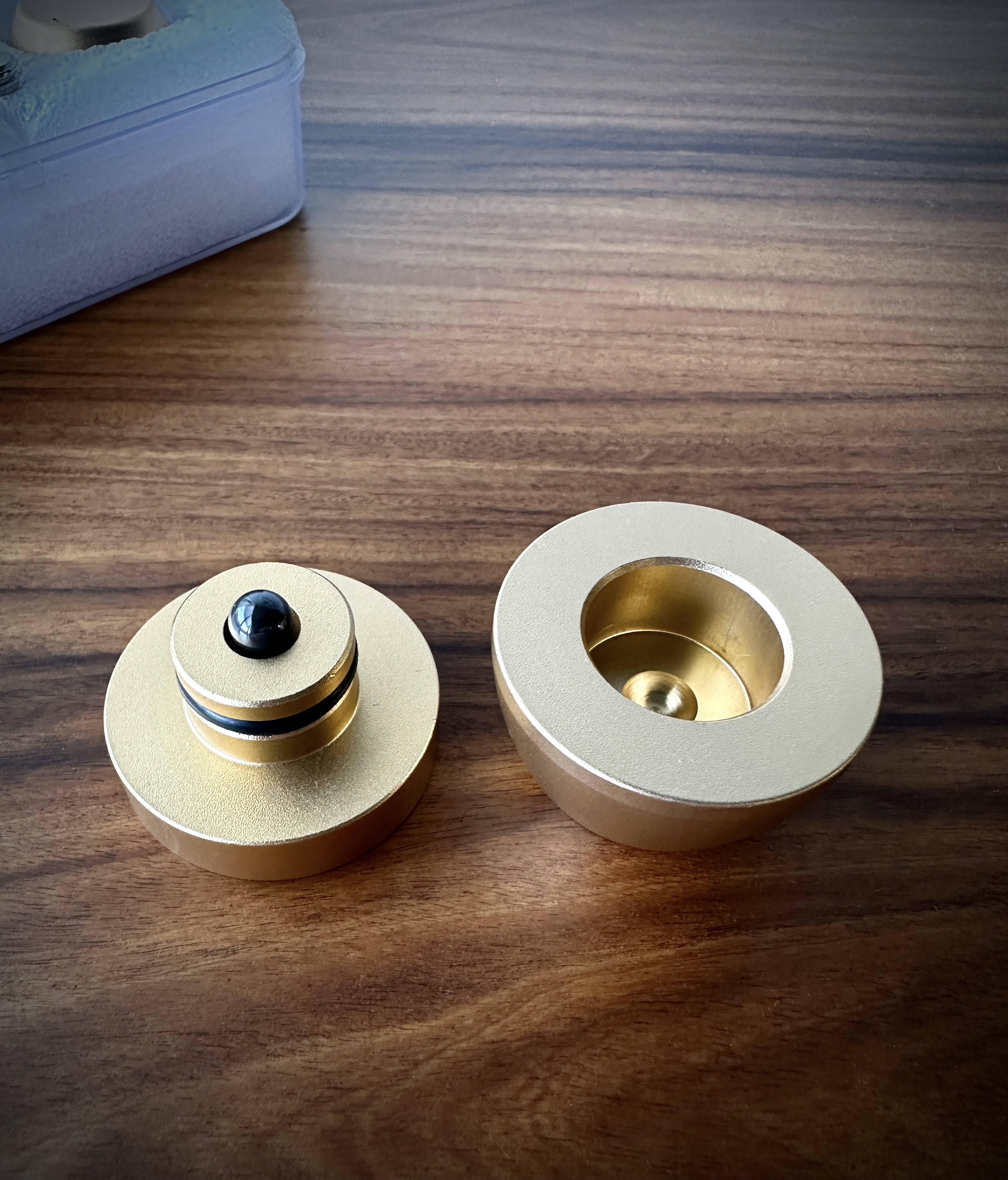 Another project I have going on is a restoration and tweak of my old Rega Planar 2 from 1976. It needs the motor cap changed, bearing cleaned, tonearm rewired (it’s the original Rega R200 arm), a new tonearm cable fabricated, a new lid and various other things. I thought I would get some new feet for it so scoured Aliexpress for something suitable. I ended up purchasing what look to be copies of the Finite Elemente Ceraballs. They are identical in construction and came with the option of steel or ceramic ball bearings. Additionally there are some rubber and cork pads to stick on as well.