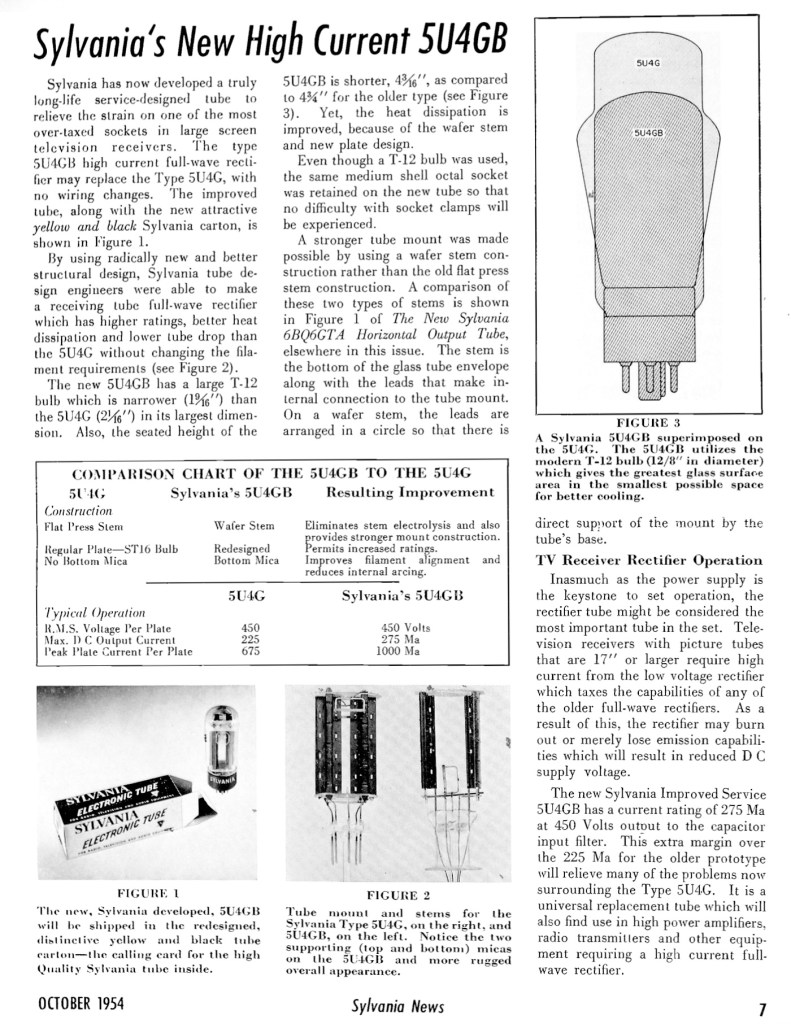 Interestingly though, Sylvania apparently invented the 5U4GB tube back in 1954. This one has black plates and a halo getter.