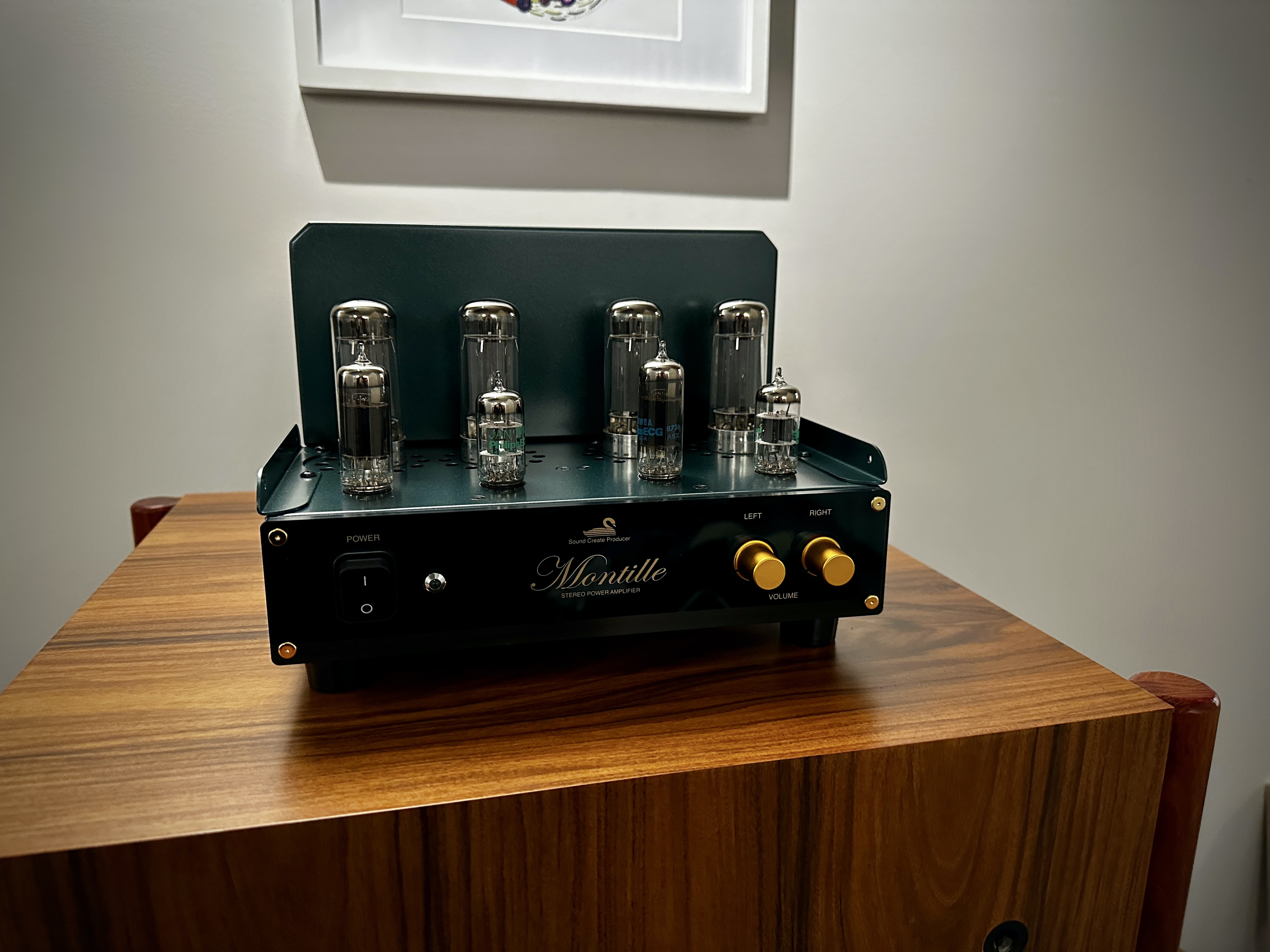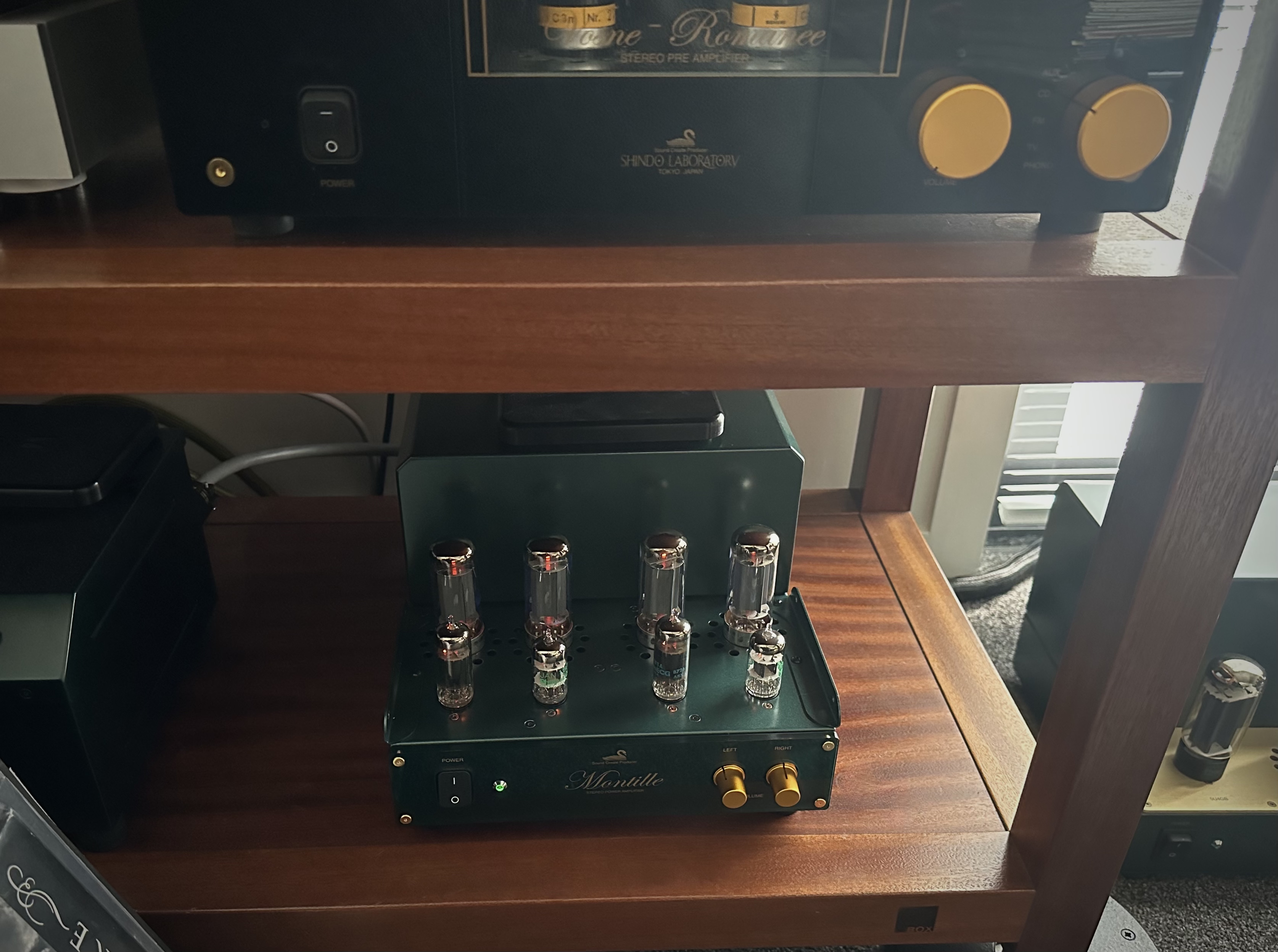 Super quick! I am grateful to Takashi and the crew for getting it to me so quickly. The Montille amps have always had a cool William Morris style Arts and Crafts feel to me in appearance. It could just be me but I think its a great looking amp. It has a pair of JAN/Philips 6AW8A pentode/triode tubes and a pair of JAN/Philips 12AT7 dual triodes as well as a quad of CV391s, which although unbranded are probably ITT or STC, I haven’t investigated too deeply yet. No rectifier tube in this one as it uses a solid state rectified power supply.