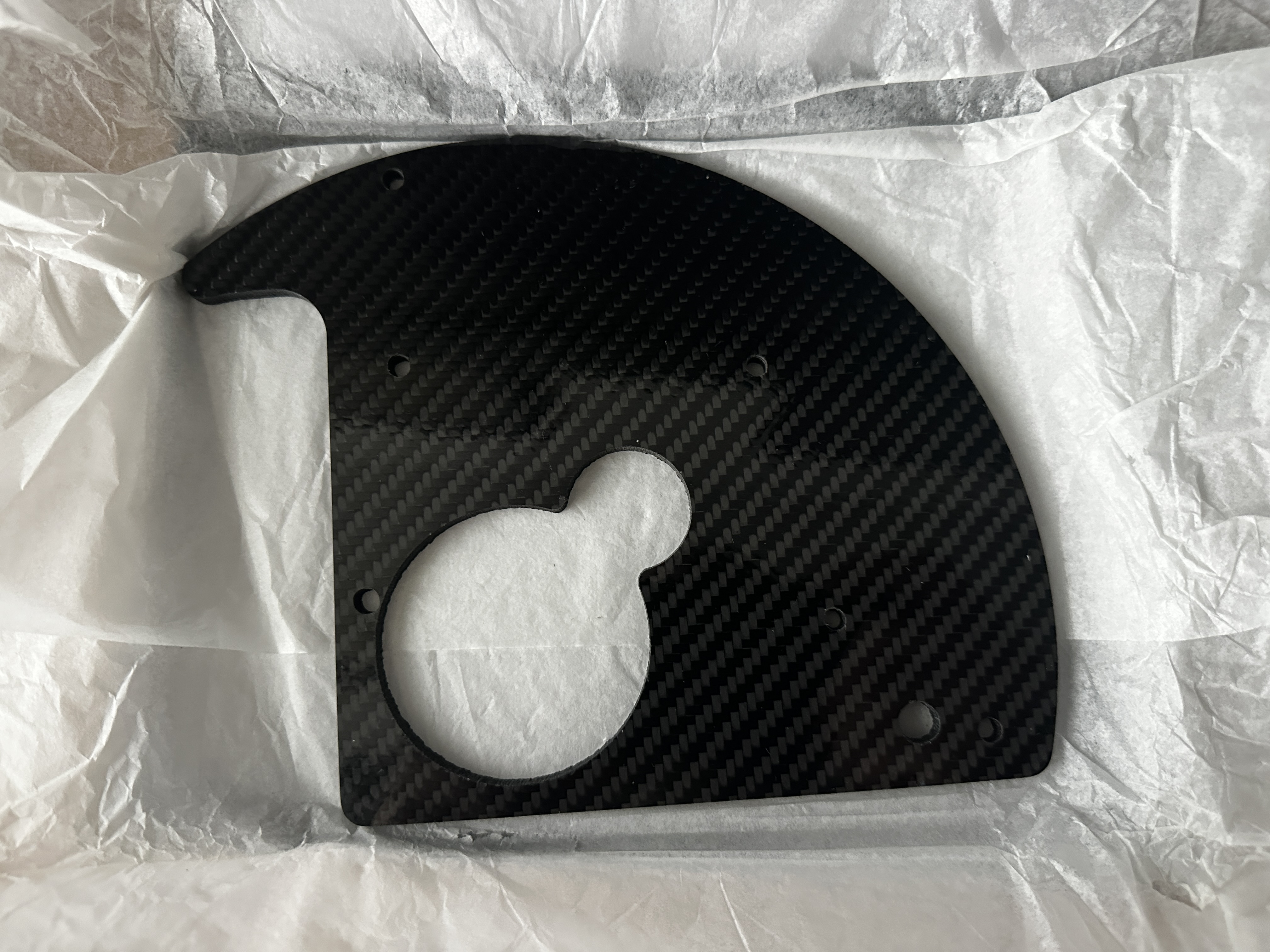 Matthew Taylor of Audio Grail has come up with a cool new contraption to address this very issue. He’s developed what he has named the Bastion Plate. Its a 5mm thick machined piece of carbon fibre that mounts to the top plate of the 301. There is plenty of clearance for after-market bearings (like my Shindo one, in fact Matt said he also uses a Shindo bearing in his own 301). It comes complete with all the longer screws required for fitment. No modification to the chassis itself is required.