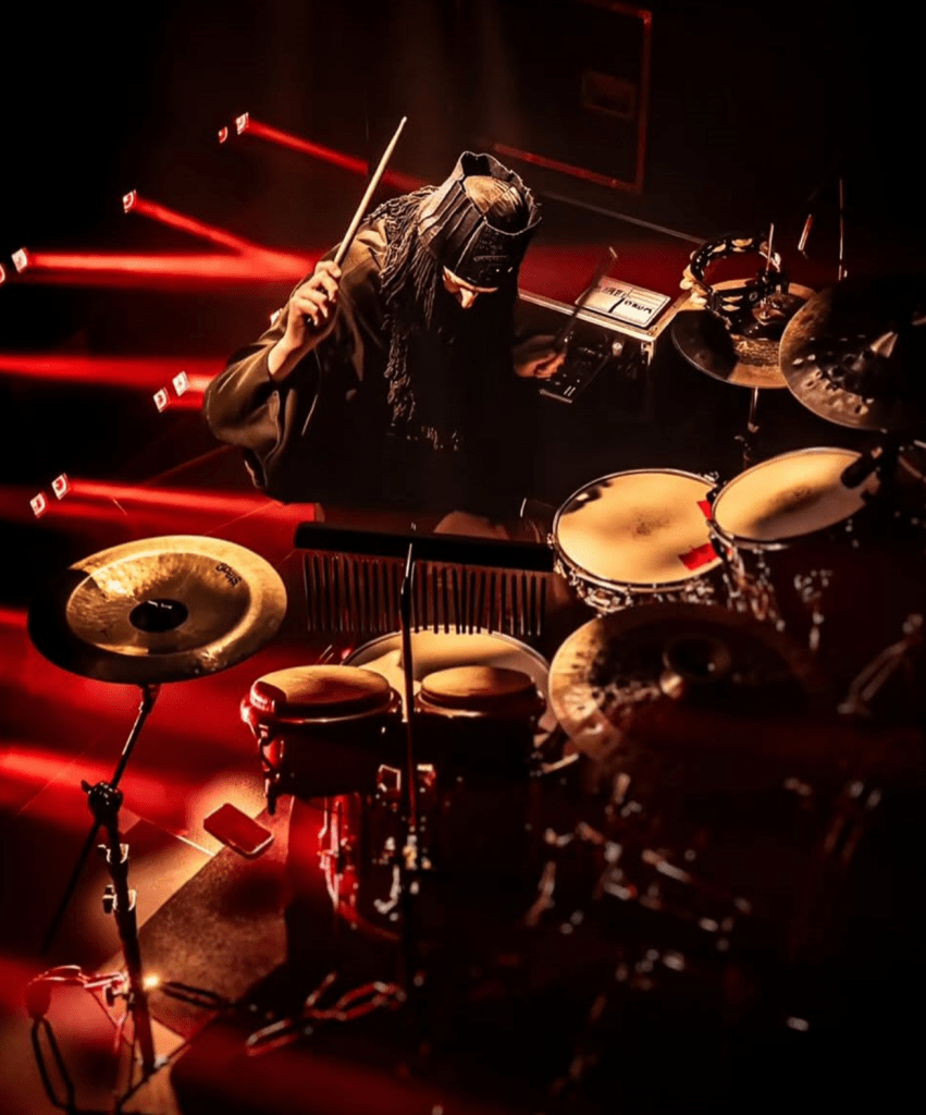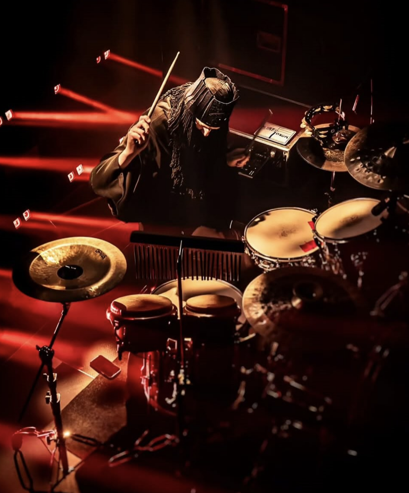 The album is framed by two long-form pieces, โQaqqari lฤ Tรขri, Part 1โ and โAhanu Ersetumโ, which function like vast stone walls holding the record together. Both begin in near-amorphous sound design: a single note, a pulse, a suggestion of rhythm. Gradually, percussion layers in, textures thicken, and eventually the music erupts into colossal passages of buzzing guitar drones, sitar, and thunderous drums. The decision to record two drummers simultaneously pays off enormously here. When Jonas Sanders and Gil Chevignรฉ lock into the same pattern, the music becomes seismic; when one holds a steady ritualistic beat while the other splinters into fills and crashes, the sense of scale and menace multiplies.