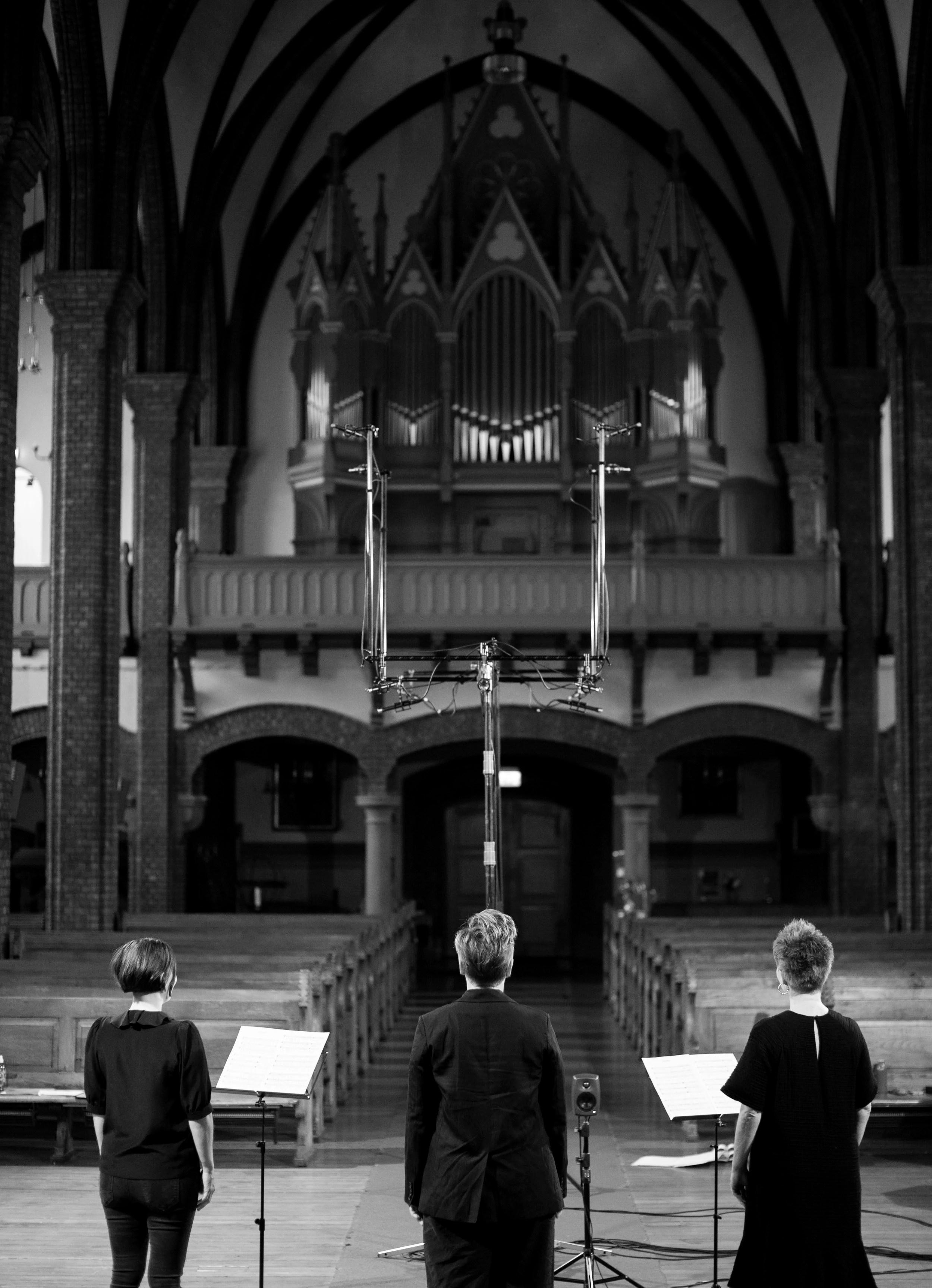On this recording the trio is Linn Andrea Fuglseth, Anna Maria Friman, and Torunn Østrem Ossum. No instruments. Just voices in a church acoustic that becomes part of the music.