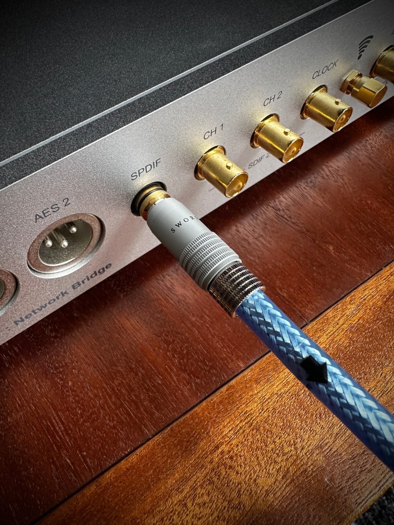 The dCS Network Bridge is like a digital Swiss Army knife, it will stream from all the useful services out there, and will downsample the stream to suit whichever dac you’re using. dCS sadly discontinued the Bridge, citing difficulty in obtaining parts and materials costs skyrocketing. I will count myself lucky I got one. It is connected to the Esoteric with a Supra Excalibur Rhodium digital interconnect.