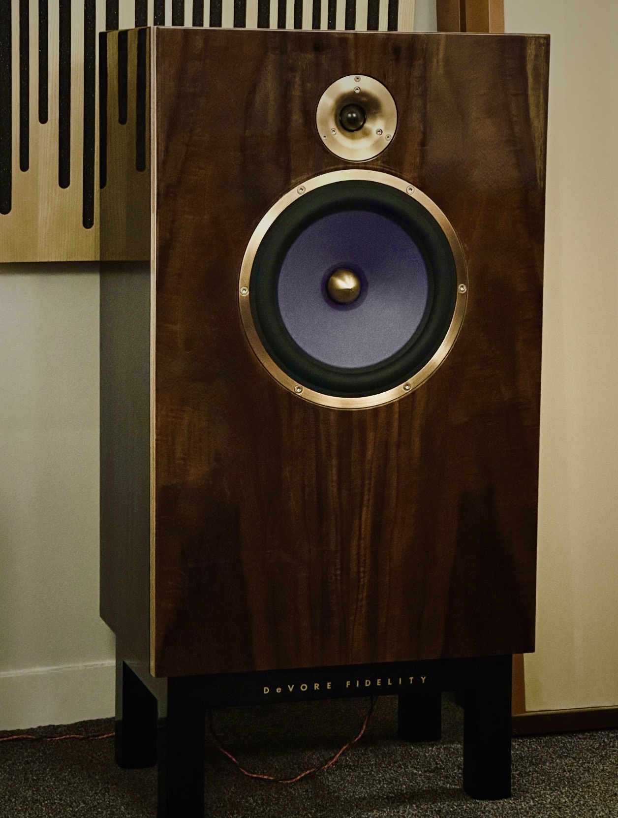 The veneer is an awesome American black walnut which complements the bronze of the drivers really well, and of course the finish is impeccable as I’ve come to expect from DeVore creations.